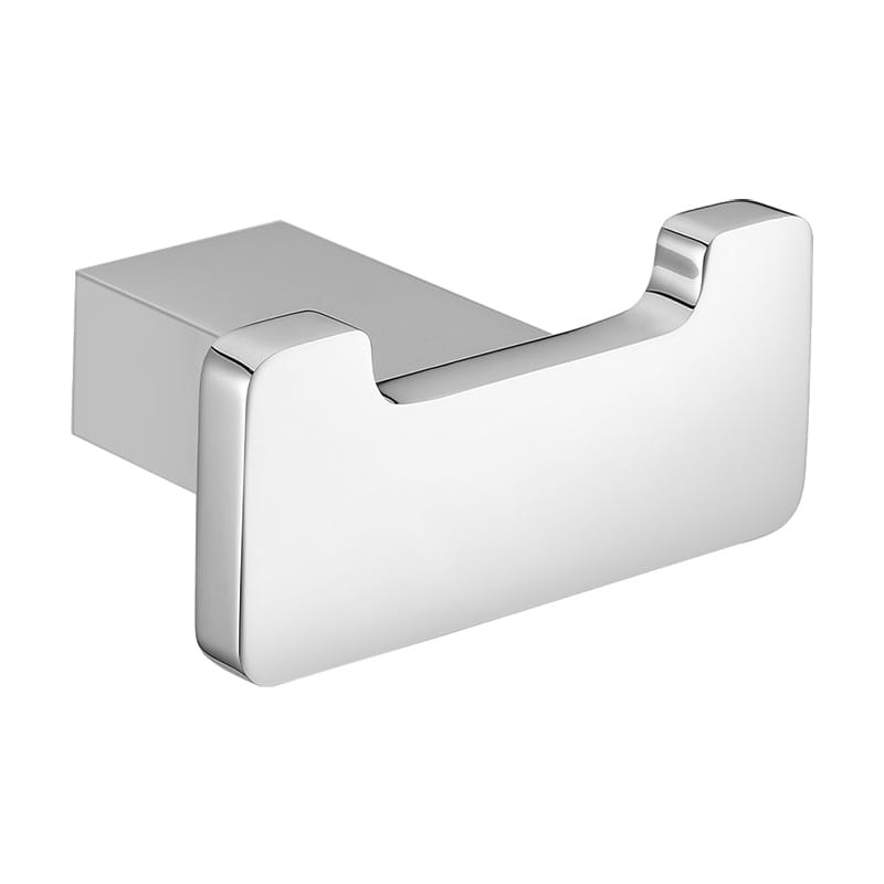 Chrome-plated metal double hanger for bathrooms, ideal for storing towels.