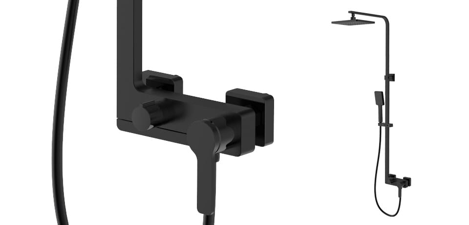 • Single-handle shower faucet for columns, in matte black