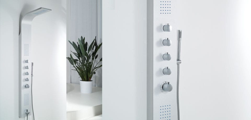 In addition to its thermostat, its robust, modern look sets Mariner apart from other shower panels. As well as the usual yet unique comfort solutions, we offer our customers 4 separate shower faucets and a faucet at the bottom for filling the bathtub. Available with silver powder-coated or glossy black steel panel body!