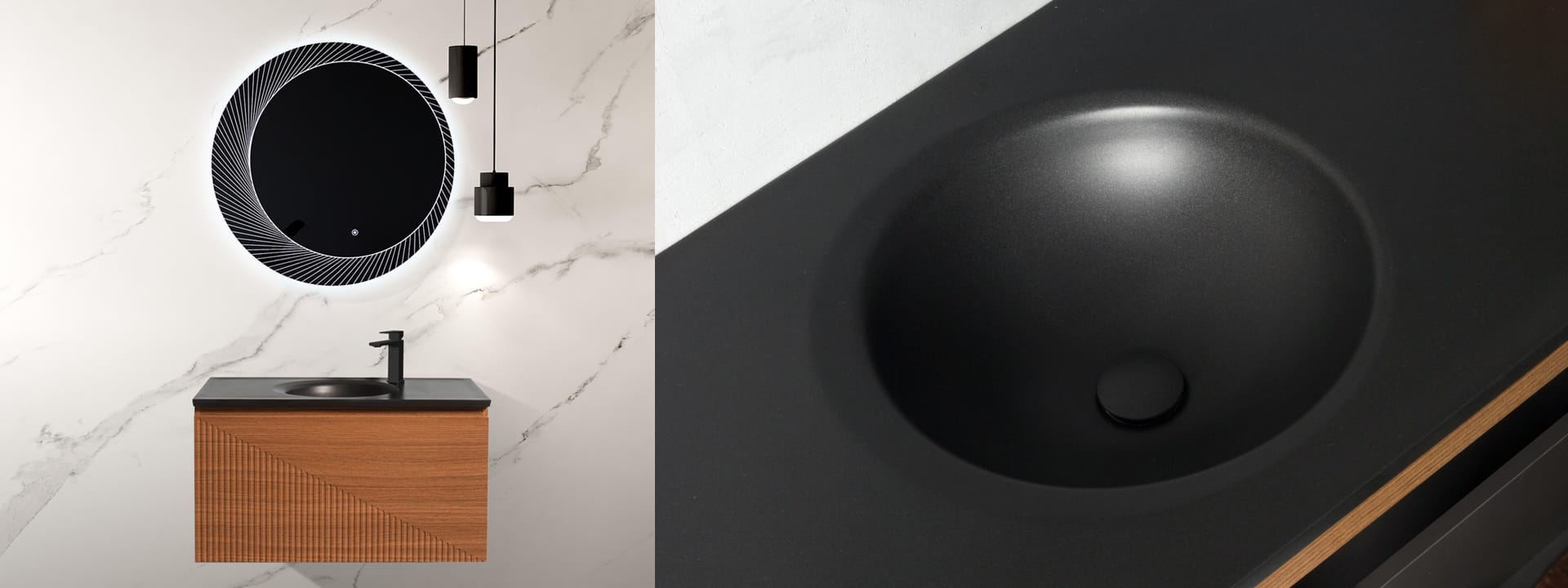 The new generation of black bathroom furniture has arrived! Our Tunis collection focuses on uniqueness and modernity, but also retains traditional values with its walnut melanine look. It looks great with any black accessory, whether it’s a toilet or bidet, or even a freestanding bathtub.